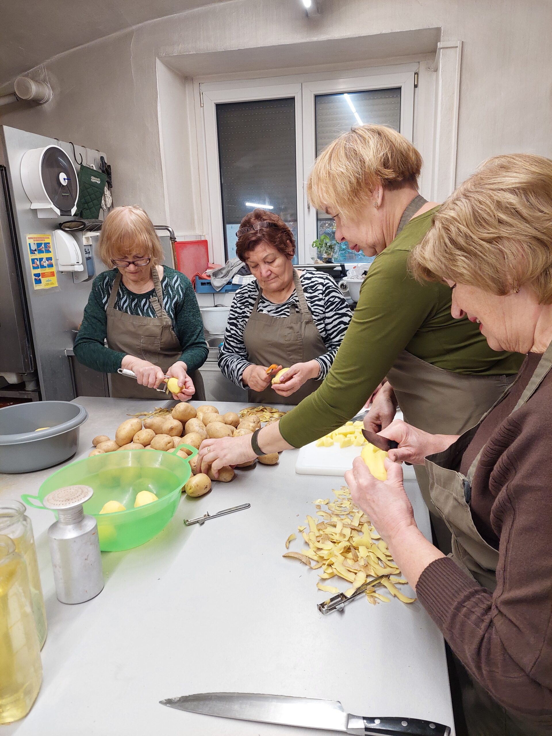 Vienas iš įdomiausių užsiėmimų vyko Althofeno restorane, kur vyko austriškų valgių gamyba. Taigi virėme šio regiono populiariausią sriubą, kepėme Vienos šnicelį, o desertui ruošėme obuolių štrudelį. Dirbo visi projekto dalyviai – skuto bulves, mušė mėsą, pjaustė obuolius, trumpai tariant sukosi virtuvėje kaip voverės, vadovaujami virtuvės šefo. O į paruoštus pietus buvo pakviestas miesto meras. Tad ne tik skanavome, ką patys paruošėme, bet ir diskutavome, bendravome.